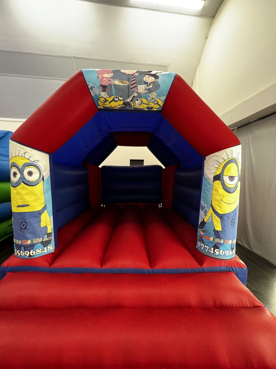 This Despicable Me / Minions bouncy castle has various pictures of minions on the side pillars and the top arch.