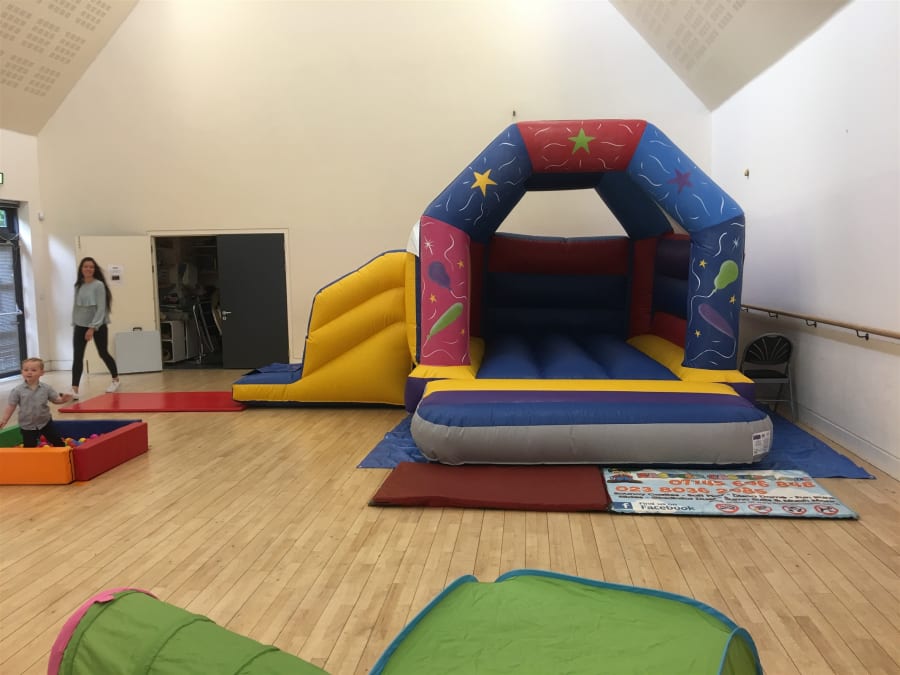 This bouncy castle is supplied with safety crash mats and has a built in rain / shower / sun cover.