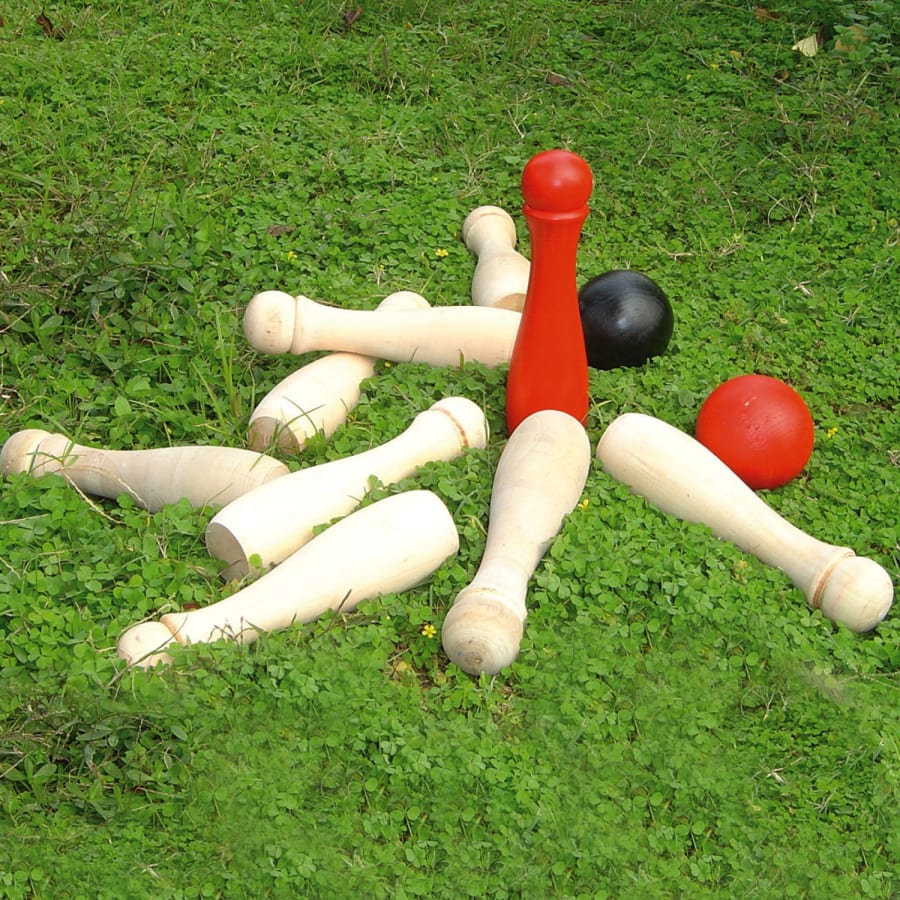 Please note: Sizes of skittle sets may vary, depending on availability in your area. Some sets contain wooden Skittles of approximately 20cm in height, some others contain plastic skittles of approximately 28cm. Please contact us for more info.