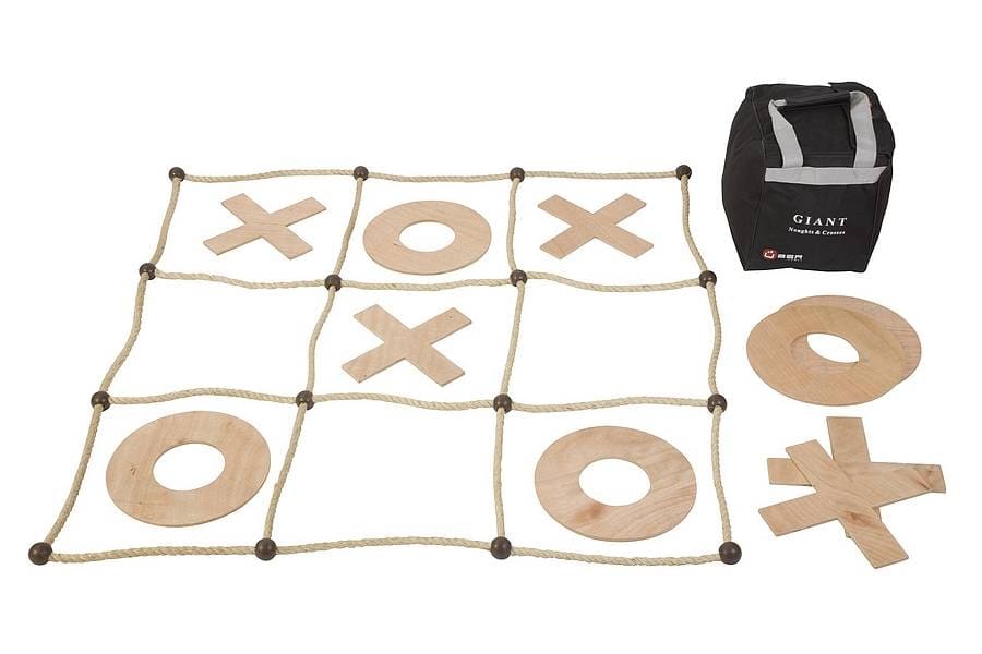 This garden game is fun to play with family or friends of all ages. Set consists of 9 interlocking foam pieces making a playing board approximately 92cm x 92cm 10 foam playing pieces, 5 Os at 16cm² and 5 Xs at 21cm²