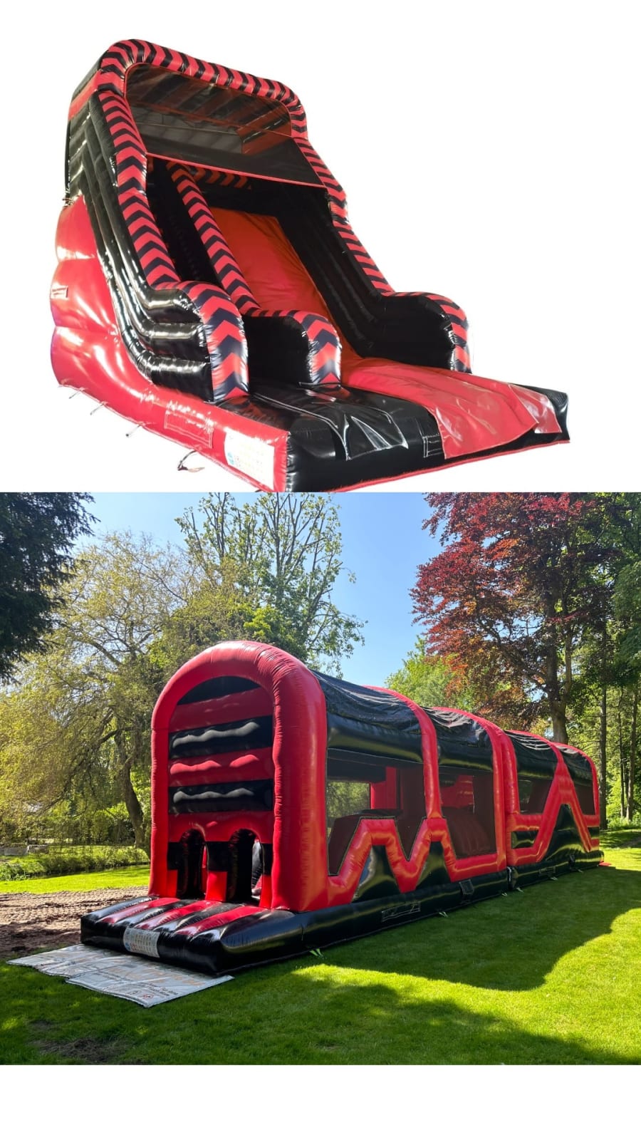 10ft x 46ft Red & Black Obstacle Course 🏃‍♂️ – Challenge your friends and family to race through this thrilling, colorful obstacle course. With its impressive length and vibrant design, it’s sure to be the centerpiece of your event!