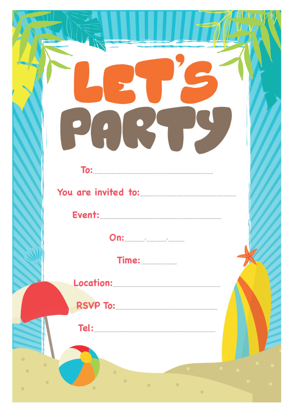 We have a selection of FREE party invitation templates for you to print, fill the blanks and send to your guests.
